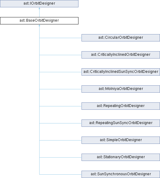 类 ast::BaseOrbitDesigner 继承关系图:Public 成员函数 | |