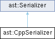 类 ast::CppSerializer 继承关系图:Public 成员函数 | |