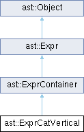 类 ast::ExprCatVertical 继承关系图:Public 成员函数 | |