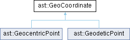 类 ast::GeoCoordinate 继承关系图:Public 成员函数 | |