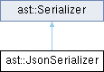 类 ast::JsonSerializer 继承关系图:Public 成员函数 | |