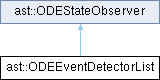 类 ast::ODEEventDetectorList 继承关系图:Public 成员函数 | |