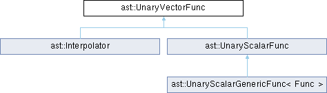 类 ast::UnaryVectorFunc 继承关系图:Public 成员函数 | |