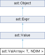 类 ast::ValArray< T, NDIM > 继承关系图:Public 成员函数 | |