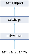 类 ast::ValQuantity 继承关系图:Public 成员函数 | |