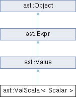 类 ast::ValScalar< Scalar > 继承关系图:Public 成员函数 | |
