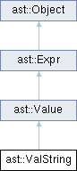 类 ast::ValString 继承关系图:Public 成员函数 | |